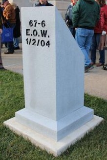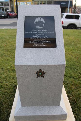 Jim Baugh Monument at the Putnam County Courthouse; 1 Courthouse Square St #33, Greencastle, IN 46135. Located on the south side of the courthouse, along the exterior walkway.
